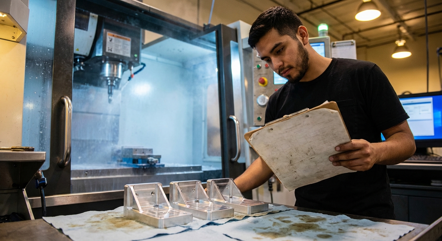 Let's walk through a real example. Your shop gets an order for 50 custom machined brackets.